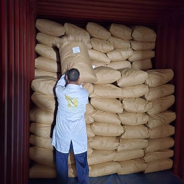 Gallery shows export containers and organic farms of Oriental Herbs.